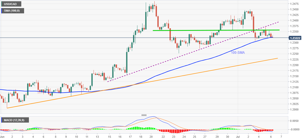 USD/CAD Price Analysis: Sellers attack 100-SMA with eyes on 1.2300