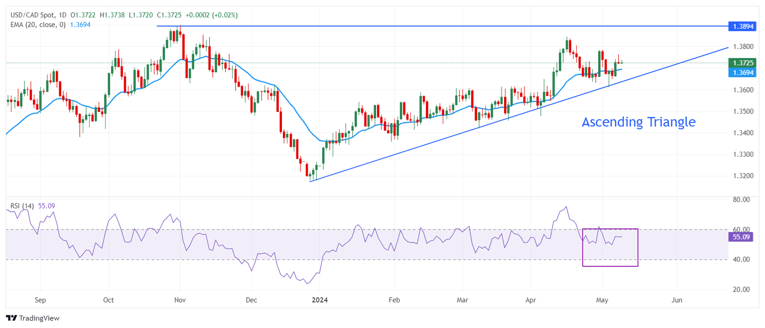 The USD/CAD pair consolidates in a tight range above the round-level support of 1.3700 in Thursday’s European session after correcting from its weekly high of 1.3760. The Loonie asset struggles for direction as the firm US Dollar keeps the downside supported, while strength in the Canadian Dollar due to a sharp recovery in the Oil price restricts the upside.