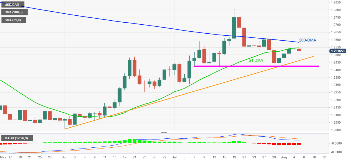 Meanwhile, a clear break of 21-DMA level of 1.2547 will recall short-term USD/CAD buyers targeting the 200-DMA level of 1.2583.