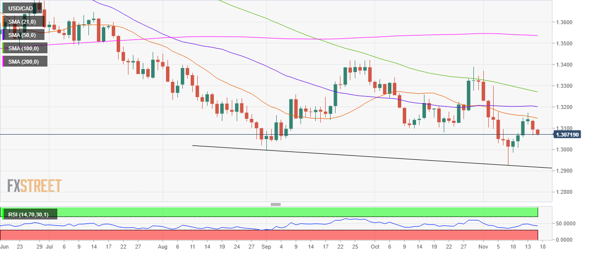 USD/CAD has recovered losses but remains well below the 1.3100 level in the European session, with the risks remaining to the downside, as technical set up favors the bears in the near-term.