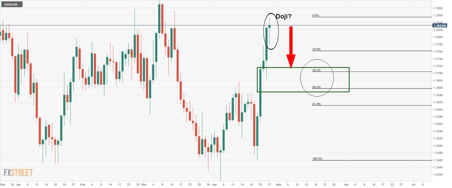 - USD/CAD could be about to turn and eyes are on the downside.