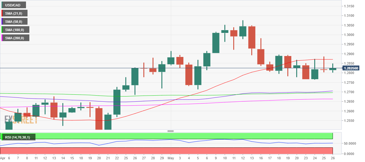 USD/CAD Price Analysis: Upside remains capped below 21-DMA ahead US/Canadian data