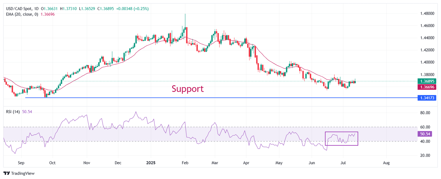 USD/CAD Price Forecast: Aims to stabilize above 1.3700 as Trump imposes 35% tariffs on Canada