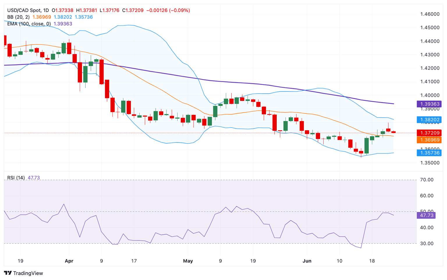 The USD/CAD pair trades in negative territory around 1.3720 during the early European session on Tuesday. The Greenback weakens against the Canadian Dollar (CAD) as a ceasefire between Iran and Israel comes into effect following four waves of Iranian attacks on Israeli-occupied territories.