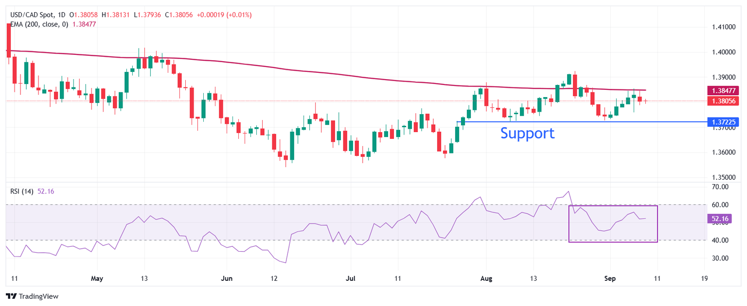 USD/CAD Price Forecast: Consolidates around 1.3800 ahead of US NFP revision