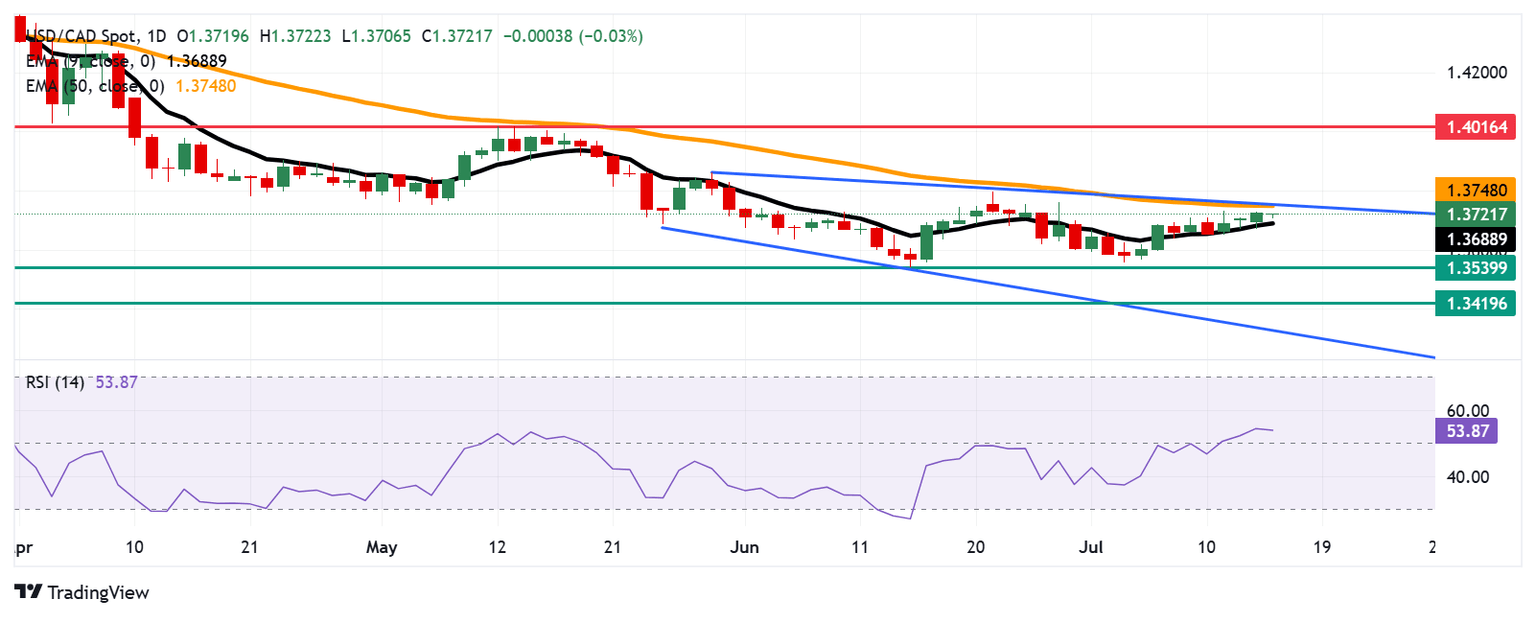 USD/CAD Price Forecast: Holds ground above 1.3700 near 50-day EMA