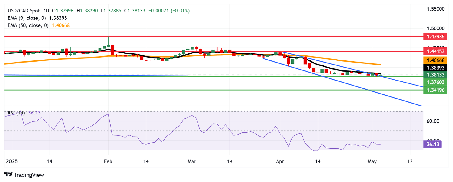 USD/CAD Price Forecast: Holds position above 1.3800, barrier appears near nine-day EMA
