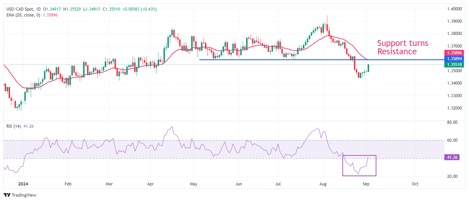USD/CAD Price Forecast: Jumps to near 1.3550