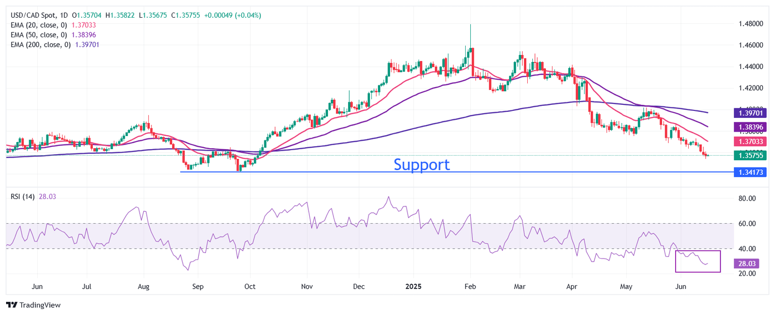 USD/CAD Price Forecast: Sees more downside towards 1.3400