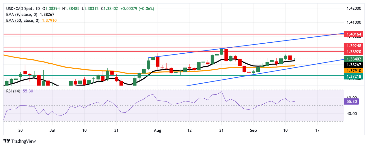 USD/CAD Price Forecast: Targets nine-day EMA support near 1.3800