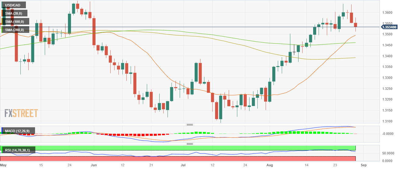 - USD/CAD fell to 1.3530, tallying losses for the second day.