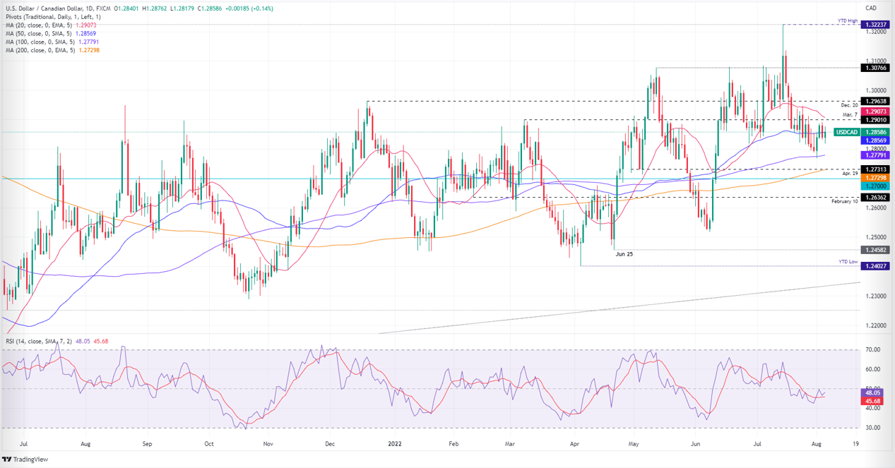 - USD/CAD Price Analysis: A break above the 50-day EMA might clear the way to 1.3000; otherwise, 1.2800 is eyed.