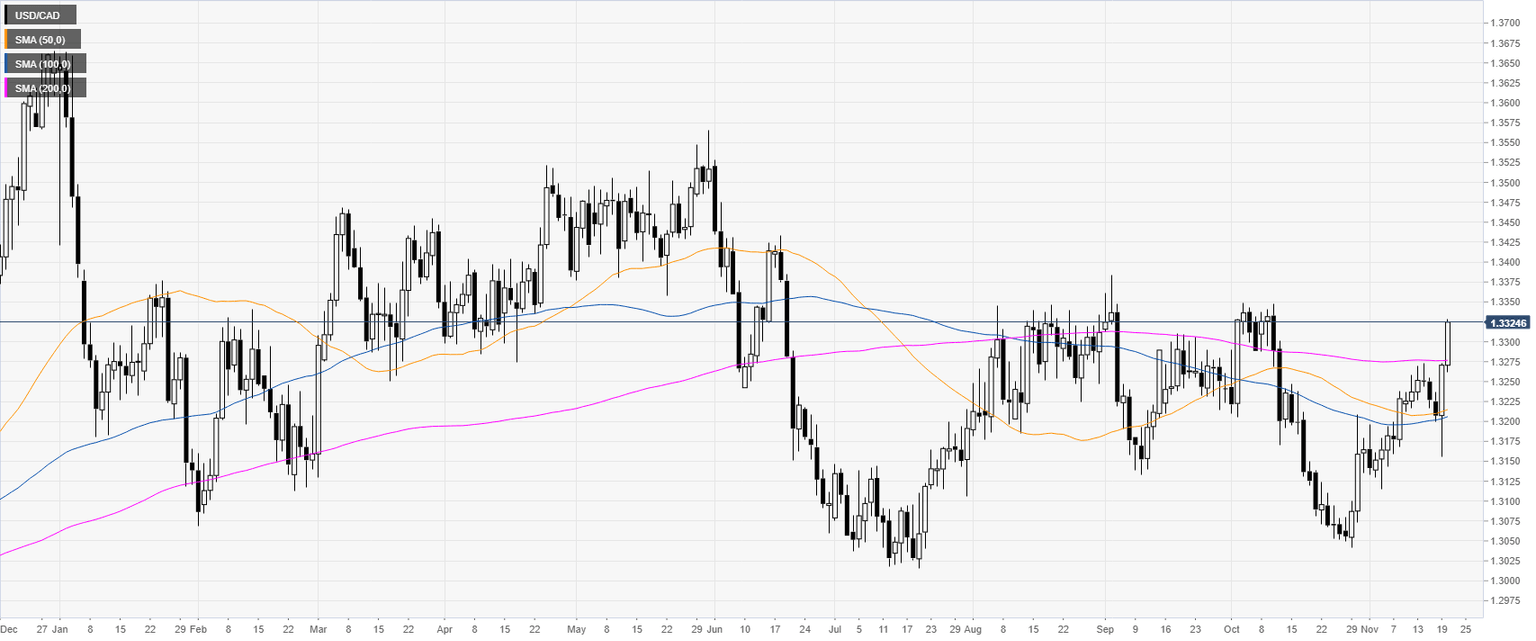USD/CAD Technical Analysis: Greenback is spiking to fresh November highs ahead of FOMC