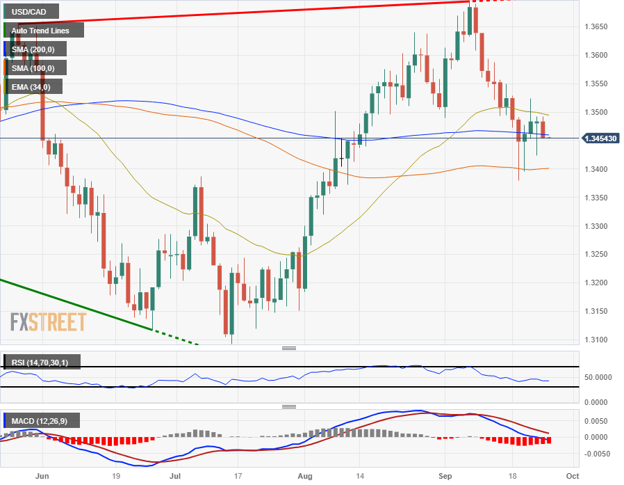 The USD/CAD slipped a scant 0.2% for Monday, after tapping into a mild intraday high of 1.3491.