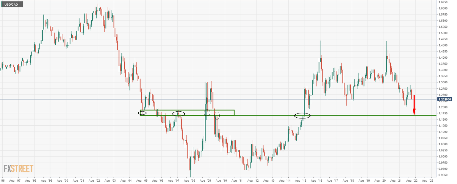 USD/CAD is a compelling long-term chart that has something for both the bulls and bears. The following is an analysis of the weekly and monthly time frames that illustrate the potential for a bullish correction followed by a downside and significant bearish extension to the 1.1680s.