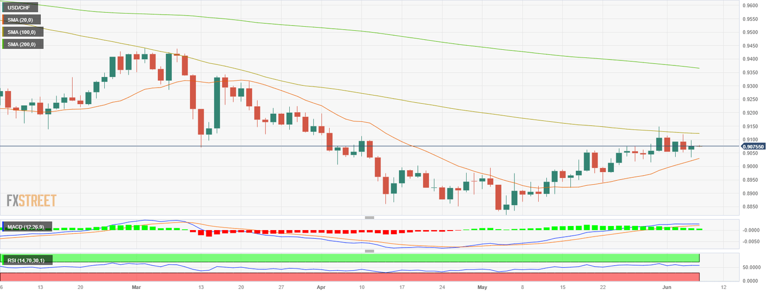 According to the daily chart, the technical outlook slightly favours the USD but indicators turned somewhat flat in positive territory. Meanwhile, the 20- and 100-day Simple Moving Averages (SMA) seem to be converging towards the 0.9100 area, hinting at a possible bullish cross by the 20-day SMA to confirm the shorter-term positive outlook.