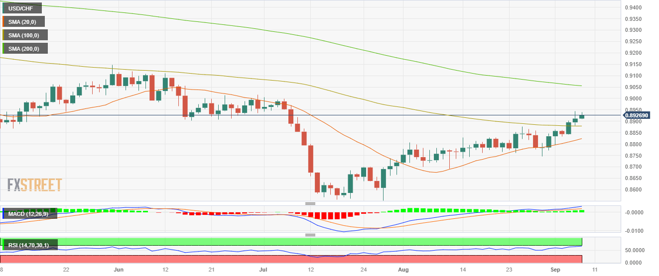 - USD/CHF rose to 0.8925, up by 0.20% daily.