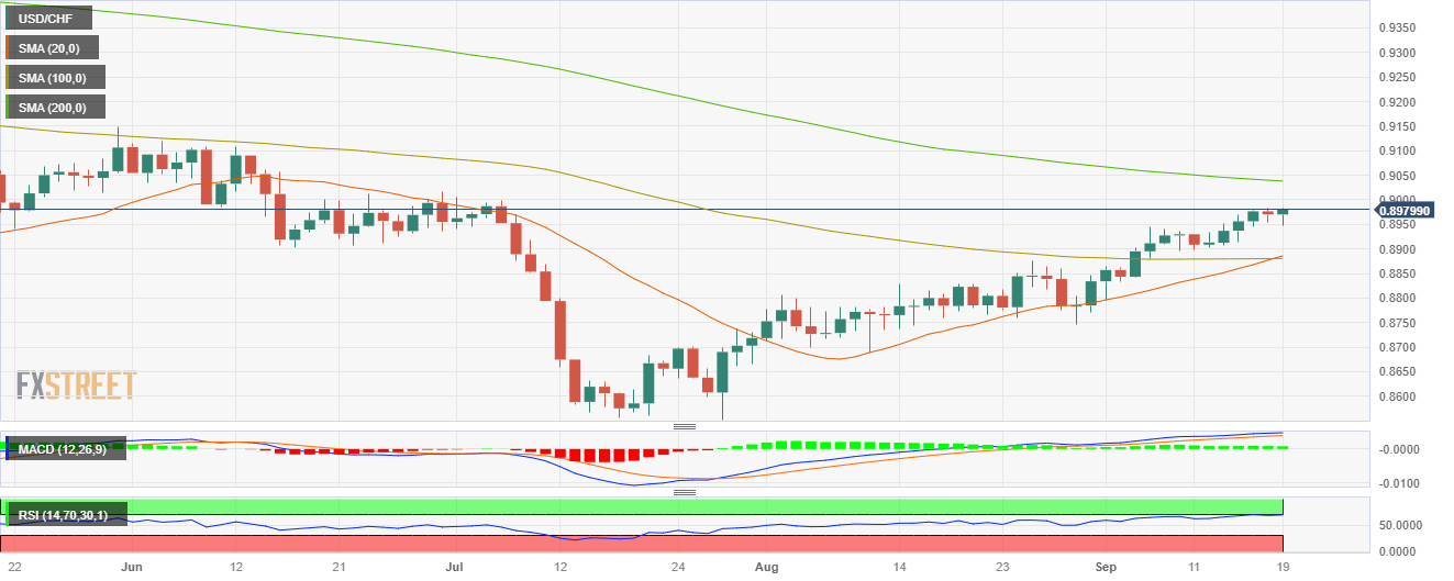 - USD/CHF continued stepping forward and rose near 0.8988.