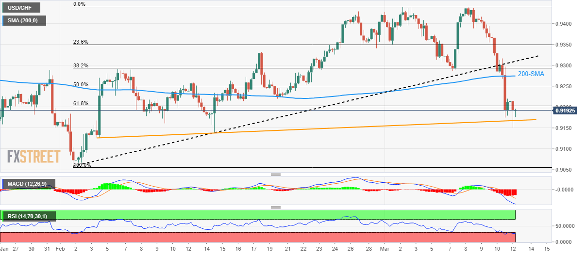 USD/CHF Price Analysis: Bears run out of steam around 0.9200