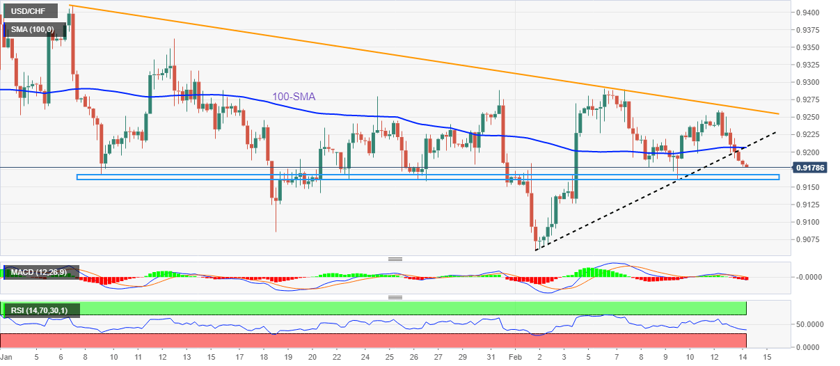 USD/CHF Price Analysis: Extends break of fortnight-old support towards 0.9160