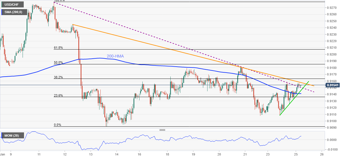 USD/CHF grinds higher around 0.9155, up 0.09% intraday heading into Tuesday’s European session.