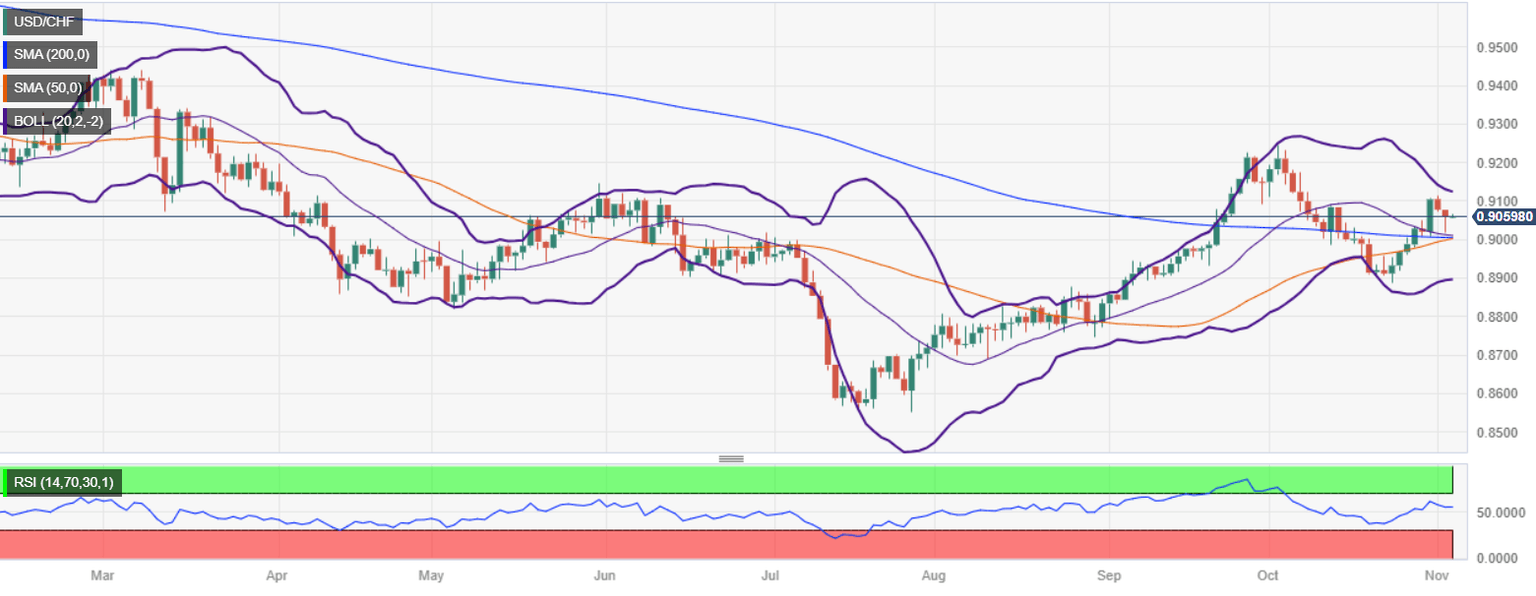 From a technical standpoint, the pair is set to extend its gains as the 50-day moving average (DMA) is about to cross above the 200-DMA, forming a ‘golden cross’ and opening the door for a bullish resumption. However, USD/CHF buyers must reclaim the latest swing high at 0.9112 before setting their sights at the latest cycle high at 0.9245, the October 3 high. Once those two levels are cleared, the year-to-date (YTD) would be exposed at 0.9440.