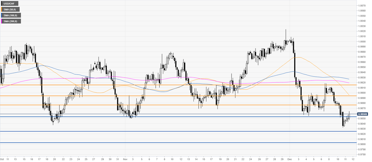 USD/CHF is trading near two-month lows below the main SMAs ahead of the Fed’s rate decision at 19:00 GMT and the press conference at 19:30. Earlier in the New York session, the Consumer Price Index ex Food & Energy (YoY) came in line with expectations at 2.3% in November.