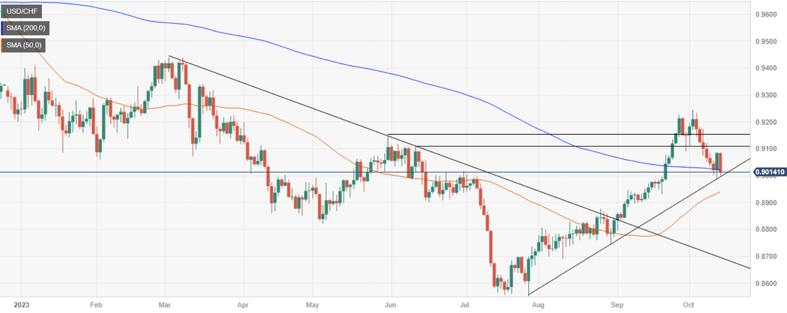 USD/CHF Price Analysis: Lingers below the 200-DMA as sellers target 0.8900