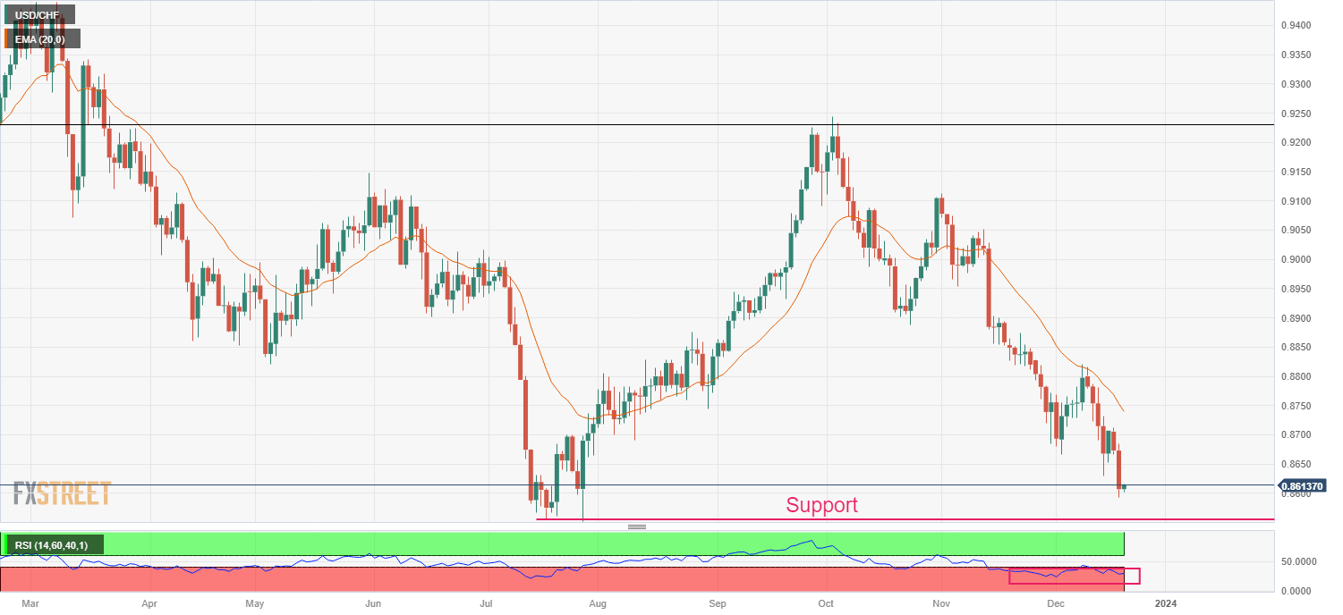 The USD/CHF pair finds an interim support after a steep correction to near the round-level support of 0.8600 in the early European session. The asset is expected to witness more downside as the broader appeal for the US Dollar is bearish as rate cuts by the Federal Reserve (Fed) has come into play.