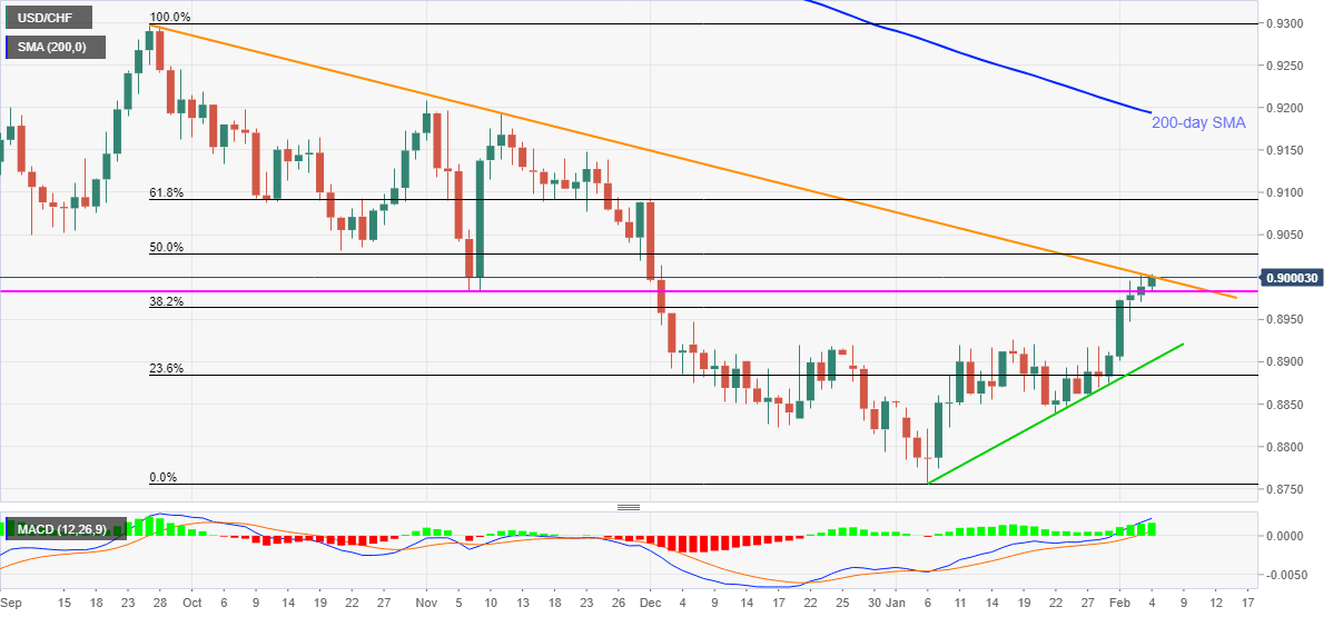 USD/CHF rises to the fresh high since early December 2020, currently up 0.15% intraday to 0.9002, during the pre-European session on Thursday.