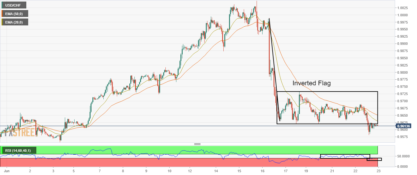 USD/CHF Price Analysis: Stability below inverted flag warrants downside to near 0.9450