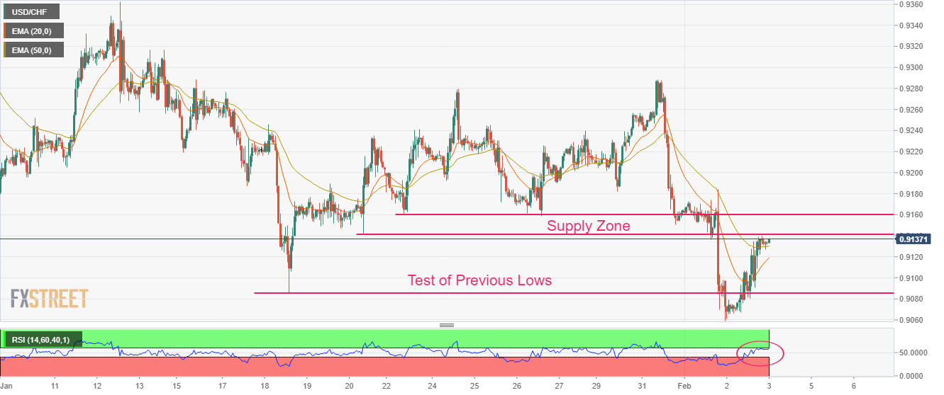 For further upside, the major needs to deliver a confident move above the 0.9140-0.9160 supply zone, which will drive the asset toward January 18 high at 0.9246 followed by January 24 high at 0.9280.