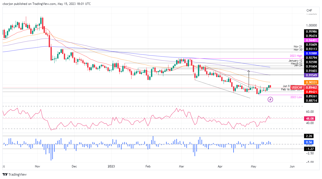 The USD/CHF marched down after hitting a daily high of 0.8987, but US Dollar (USD) bulls’ lack of strength, weak US economic data, and expectations of an aggressive Swiss National Bank (SNB) bolstered the Swiss Franc (CHF). At the time of writing, the USD/CHF is trading at 0.8944, down 0.40%.