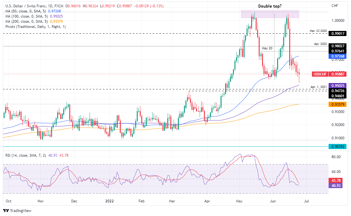 - USD/CHF Price Analysis: Double top remains in play, but USD/CHF require to hold spot prices below 0.9600.