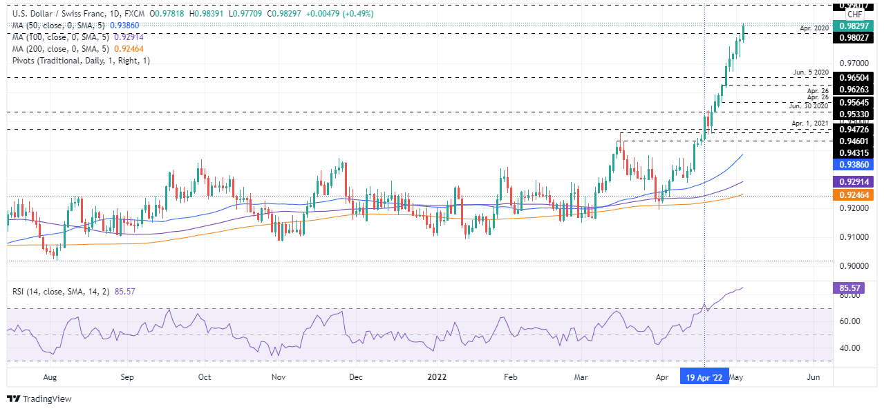 - USD/CHF Price Forecast: Upward biased, despite RSI being in overbought territory but still aiming higher.