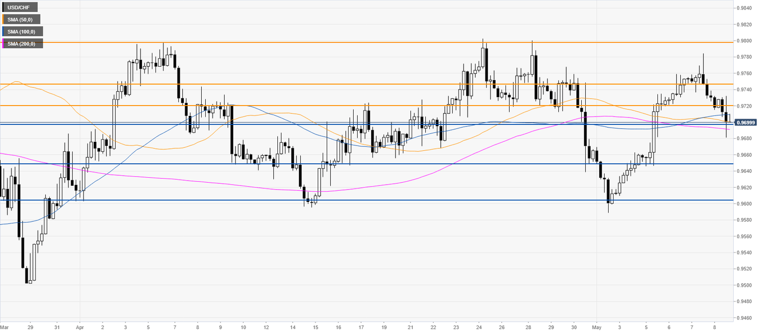 USD/CHF Price Analysis: US dollar down, challenges 0.9700 figure vs. Swiss franc