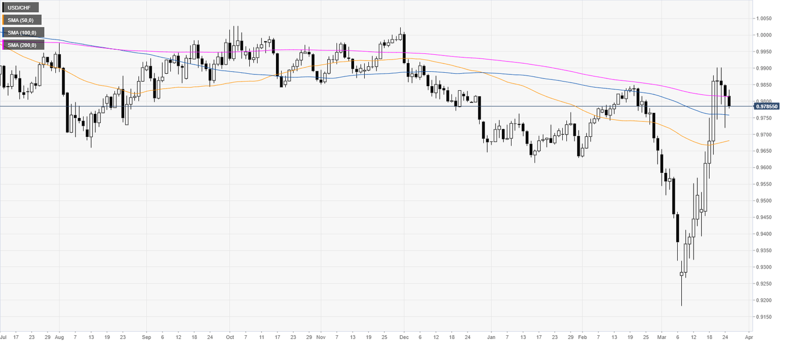 USD/CHF Price Analysis: US dollar sidelined, off 2020 highs vs. Swiss franc, sub-0.9800 figure