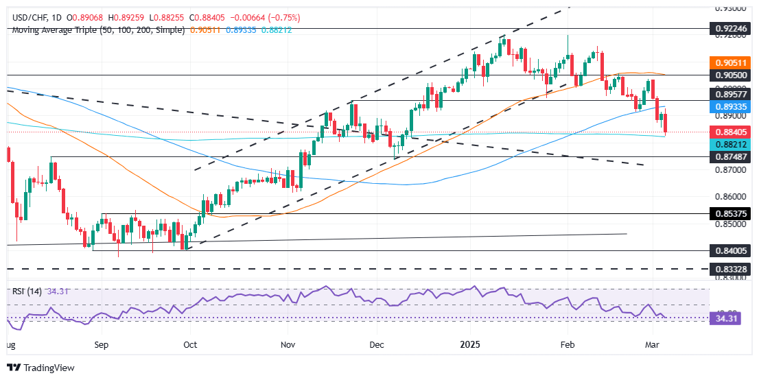 The USD/CHF has been extending its decline below 0.9000 since Monday and fell to a yearly low of 0.8824, shy of testing the 200-day Simple Moving Average (SMA) at 0.8818, which, if cleared, could’ve opened the way to testing 0.8800.