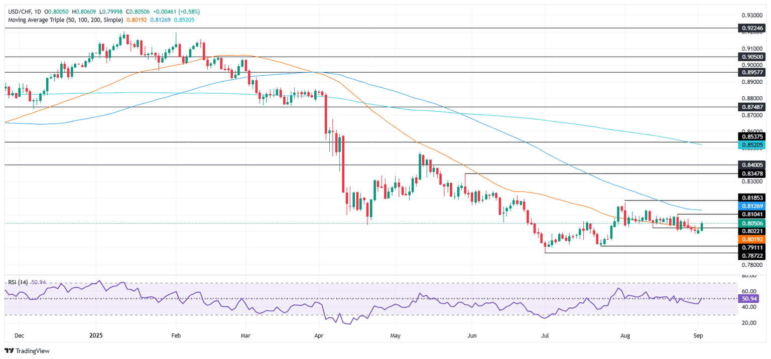 USD/CHF Price Forecast: Climbs to 0.8050 as risk aversion boosts USD