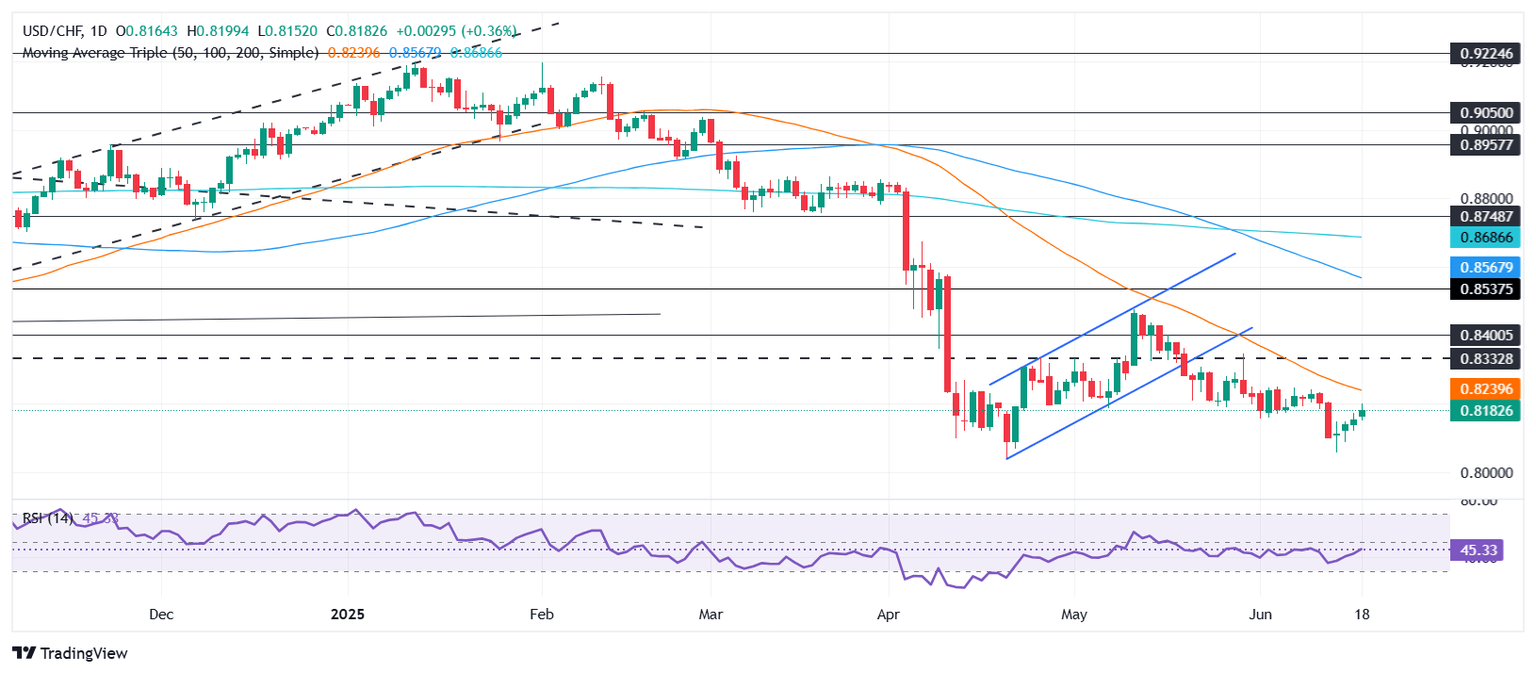 The USD/CHF advances for the fourth straight day after the Federal Reserve’s (Fed) decision to hold rates unchanged, though they are still eyeing two rate cuts in 2025. This, along with US President Trump's remarks that he’s open to Iran talks, boosted the Dollar. At the time of writing, the pair trades at 0.8180, up 0.08%.