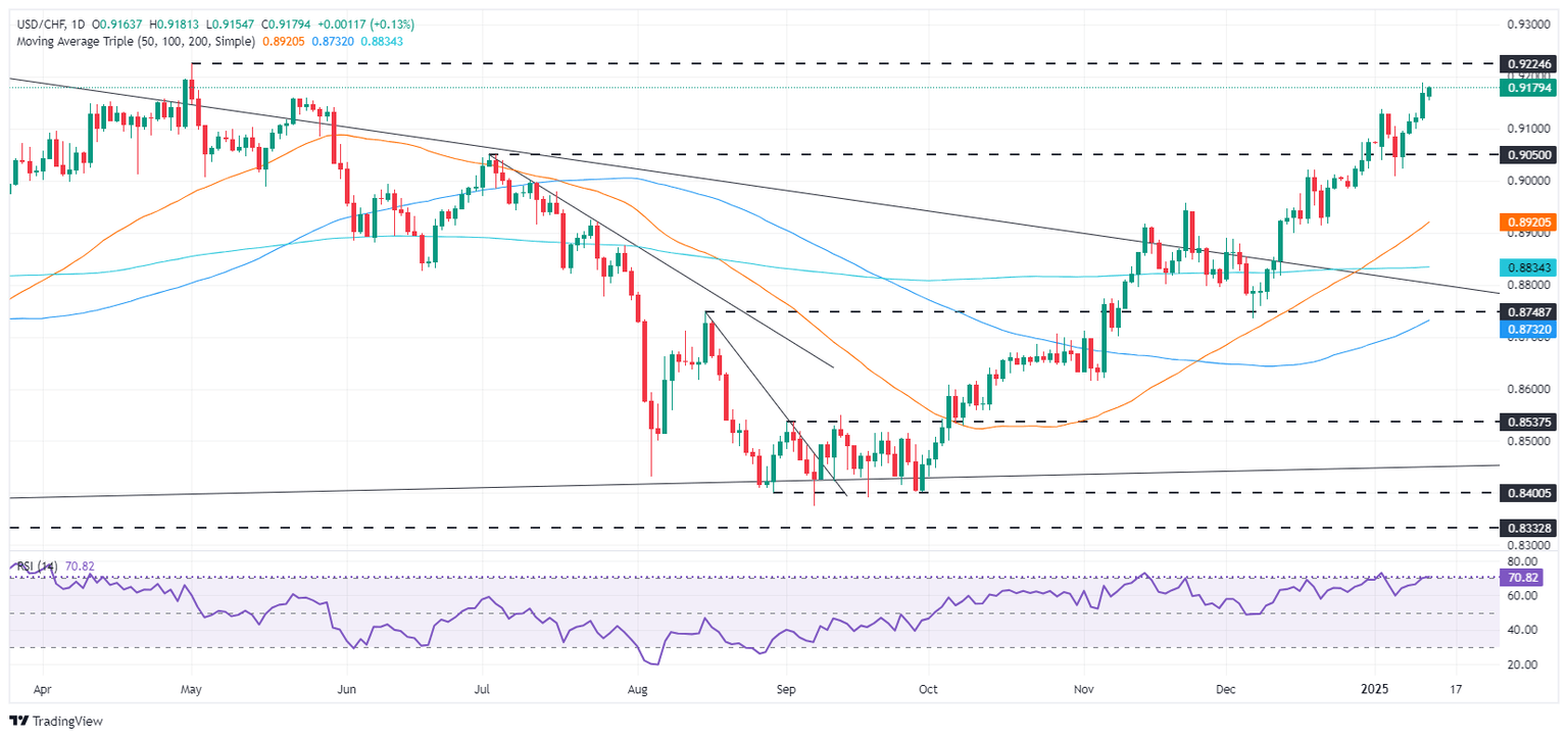 USD/CHF Price Forecast: Extends uptrend as bulls' eye 0.9200