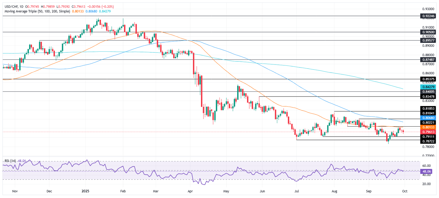USD/CHF Price Forecast: Holds 0.7939 support, eyes 0.8000 recovery