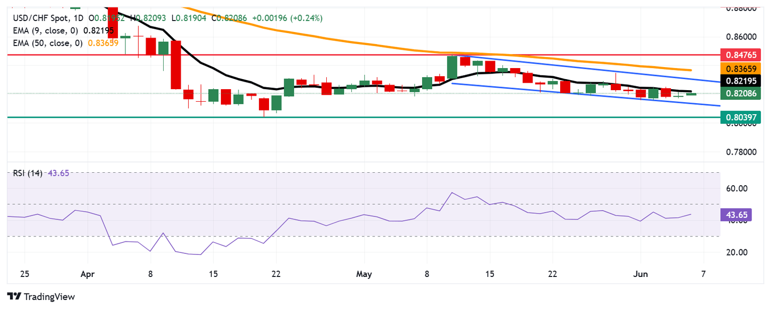USD/CHF Price Forecast: Hovers above 0.8200 near nine-day EMA barrier