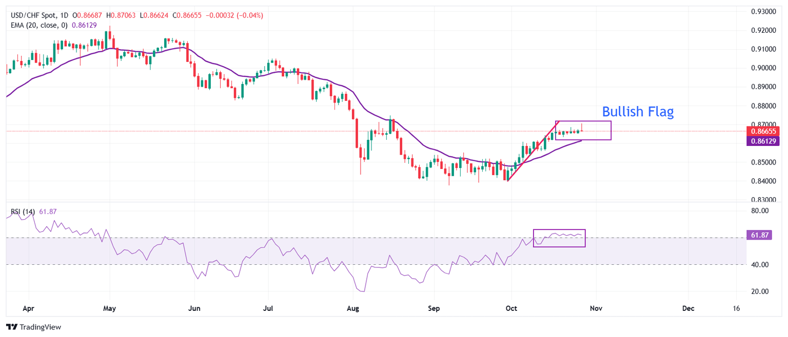 USD/CHF Price Forecast: Retreats from 0.8700