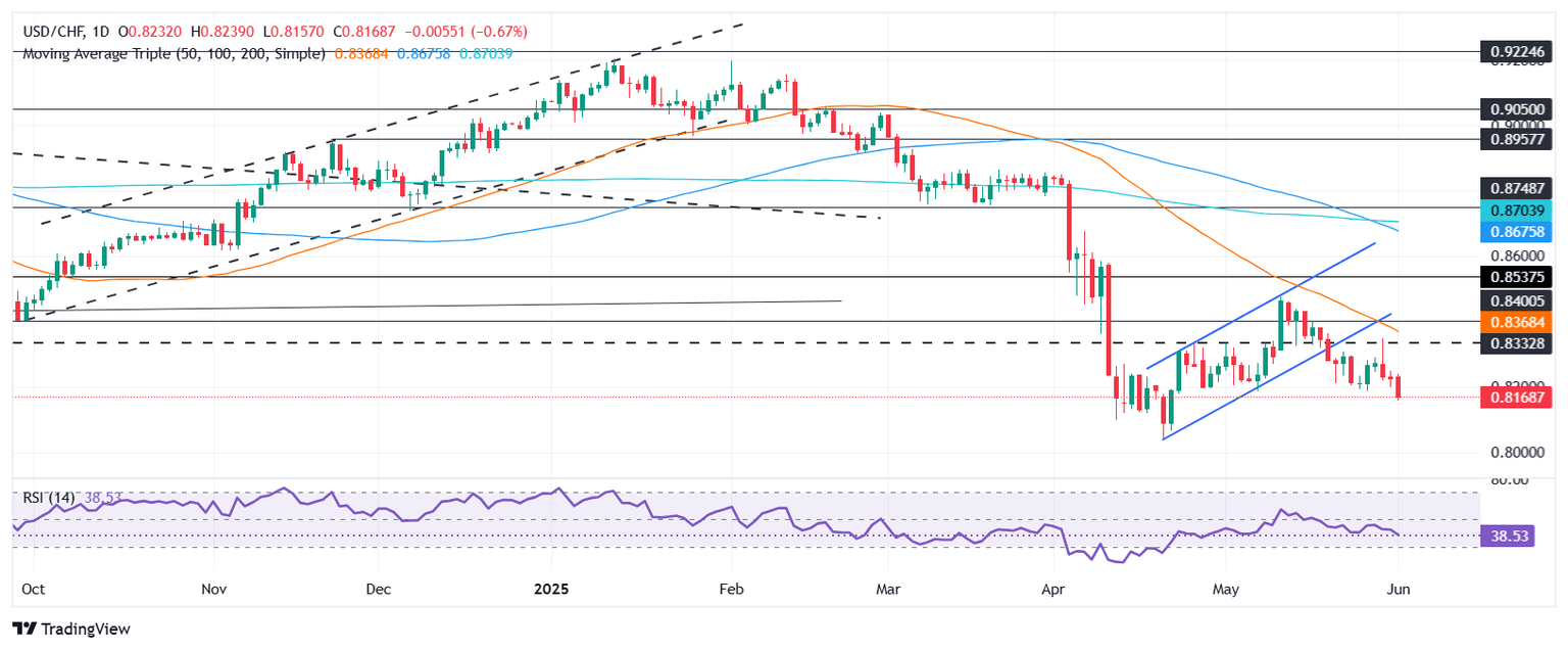 USD/CHF Price Forecast: Slides below 0.82, reaches multi-week low as USD appreciates