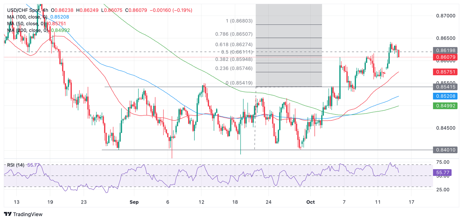 USD/CHF is pulling back within its short-term uptrend after peaking at 0.8642 on Monday. The move is only likely to be a temporary correction, however, before the pair resumes its uptrend and extends its sequence of higher highs and higher lows.