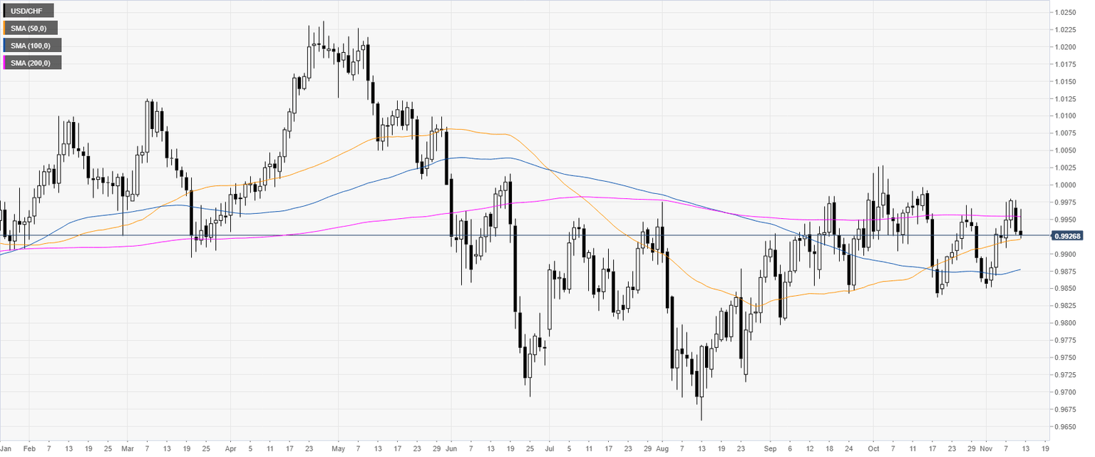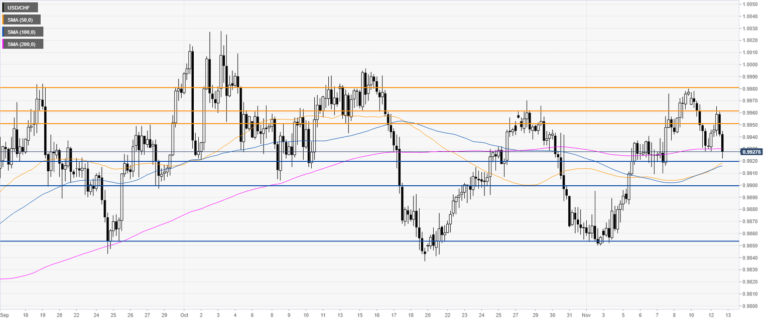 USD/CHF is retracing down from the current November highs while challenging the 0.9920 level and 200 SMA. If the buyers give up, the spot can continue to decline towards the 0.9899 and 0.9855 support levels, according to the