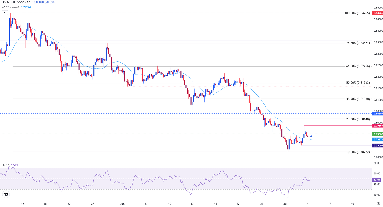 - USD/CHF consolidates below 0.800 ahead of Trump’s ‘Big Beautiful Bill’ signing.