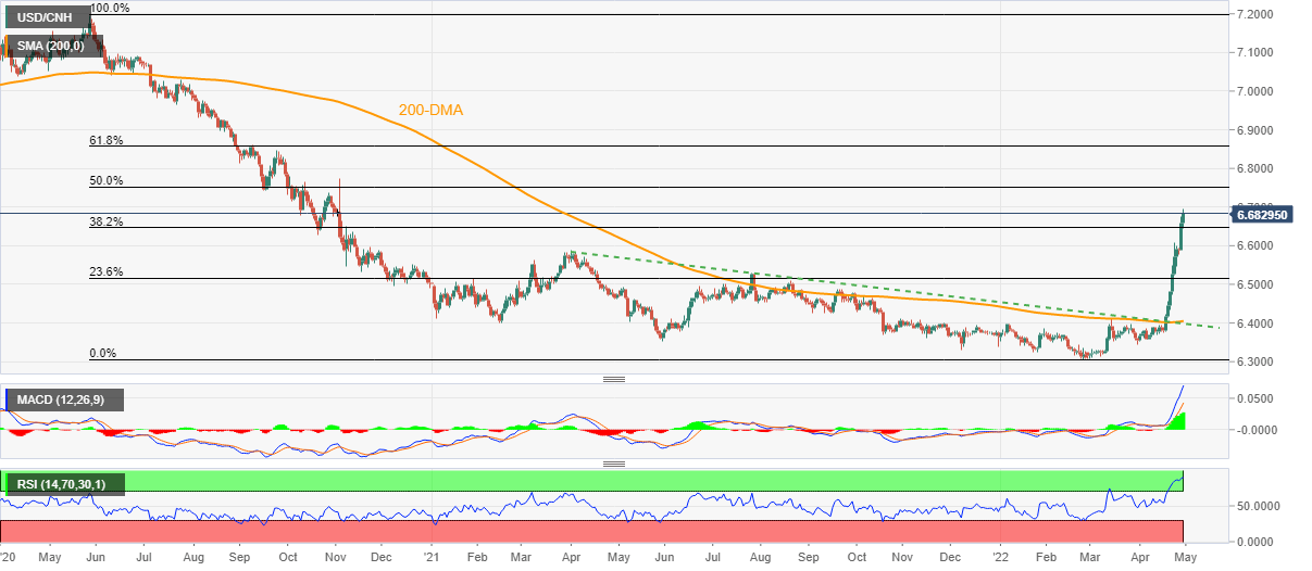 USD/CNH remains on the front foot around a 1.5-year high surrounding 6.6900 during Friday’s Asian session.