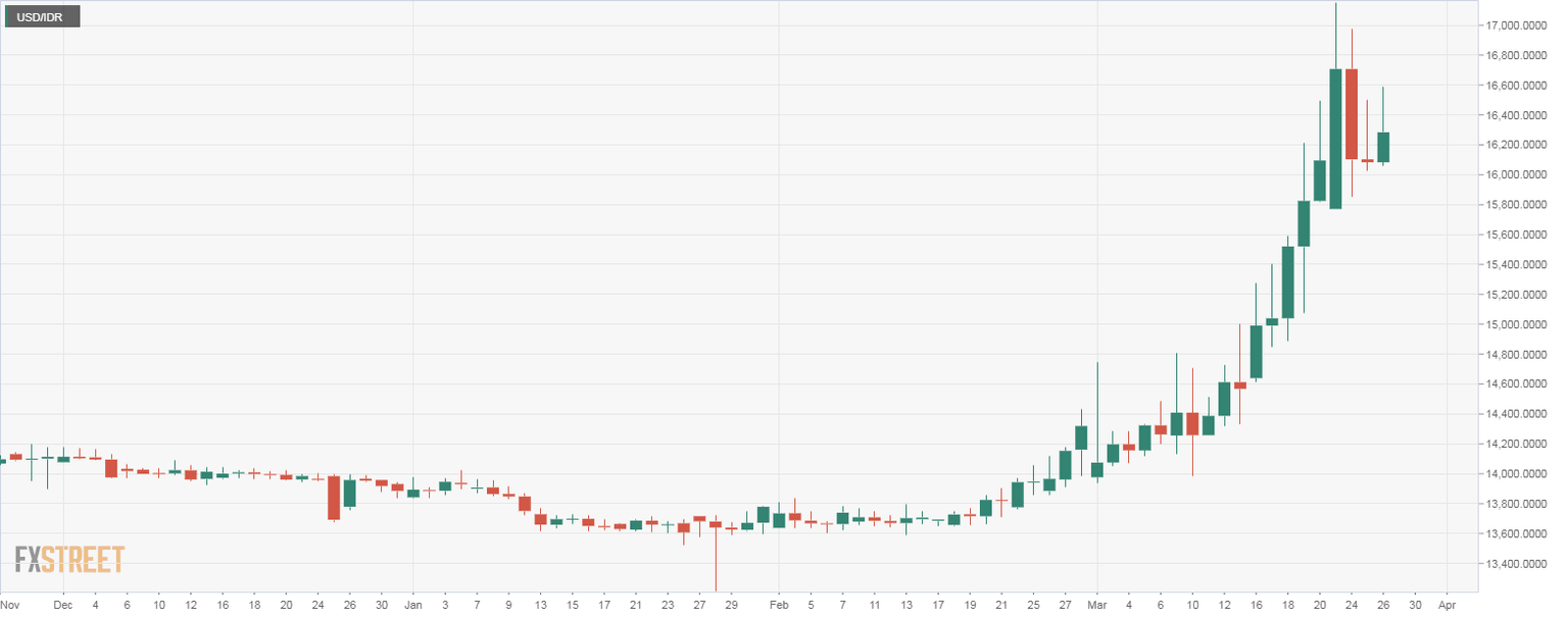 USD/IDR is currently trading near 16,300, representing a 1.3 percent daily decline in Indonesia's Rupiah.